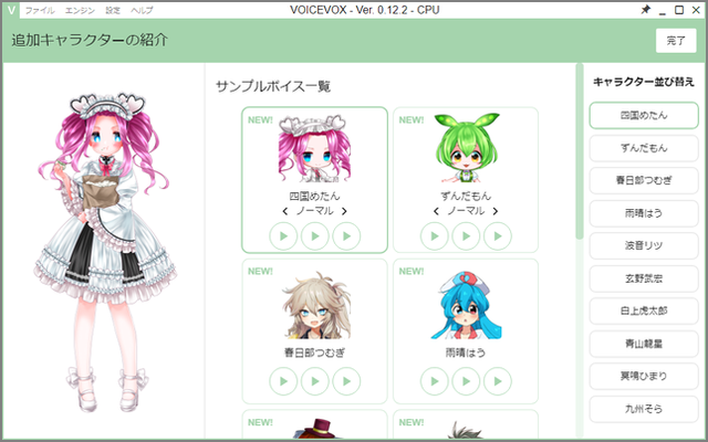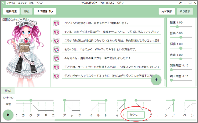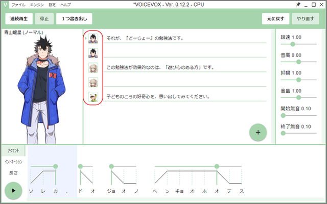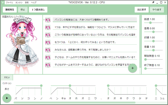 複数のキャラクター(声)を使い分けられ、読み方の調整もできる、読み上げソフト。