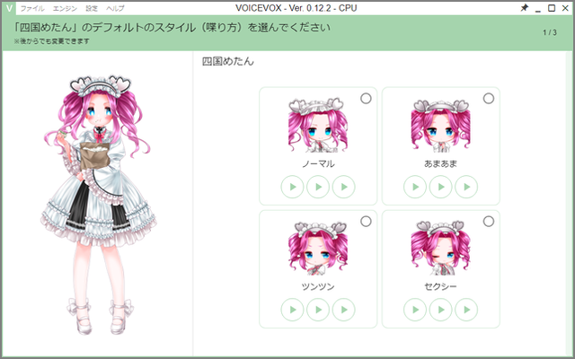 3キャラクターは、「スタイル(喋り方)」が選べます。