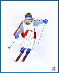息子が小回り不整地(こぶ斜面)で検定を受けている所を描きました。