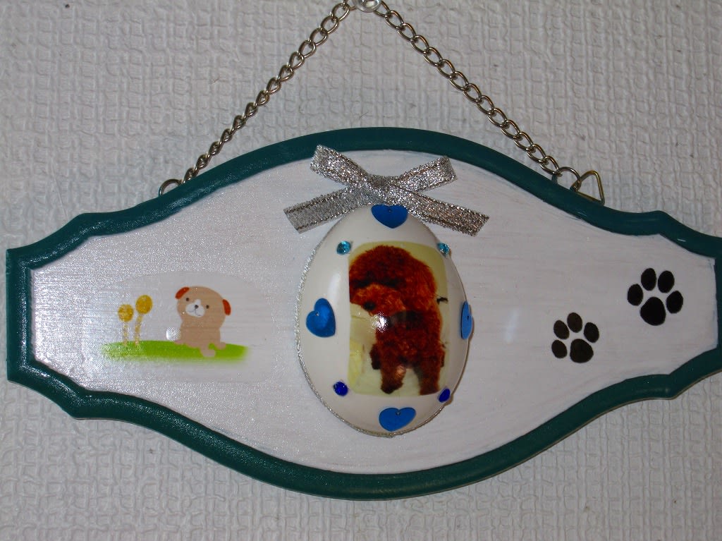 卵に愛犬とハート♡を貼って、愛情いっぱいの作品にしました。