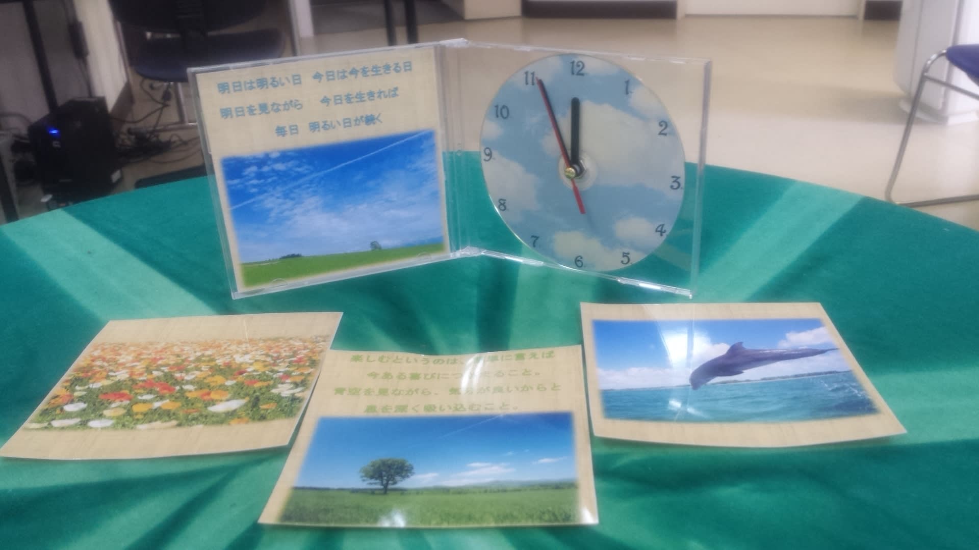 CD時計 パソコン作品 X Facebook はてブ LINE コピー コメント 2013.07.01 ↑画像をクリックすると、拡大します。 作者:Romiさん 作者コメント: 2作目のCD時計は娘へのプレゼントとして作りました。 出来上がった時計を見てとても喜んでくれたので頑張った甲斐があります。 担当インストラクターコメント: 1作目のムーミン時計とはまた違った雰囲気の作品が出来ました。 左側には自然の写真と一緒に詩をのせています。 詩をのせるという発想に感動しちゃいました。